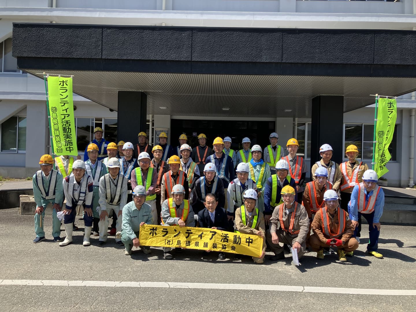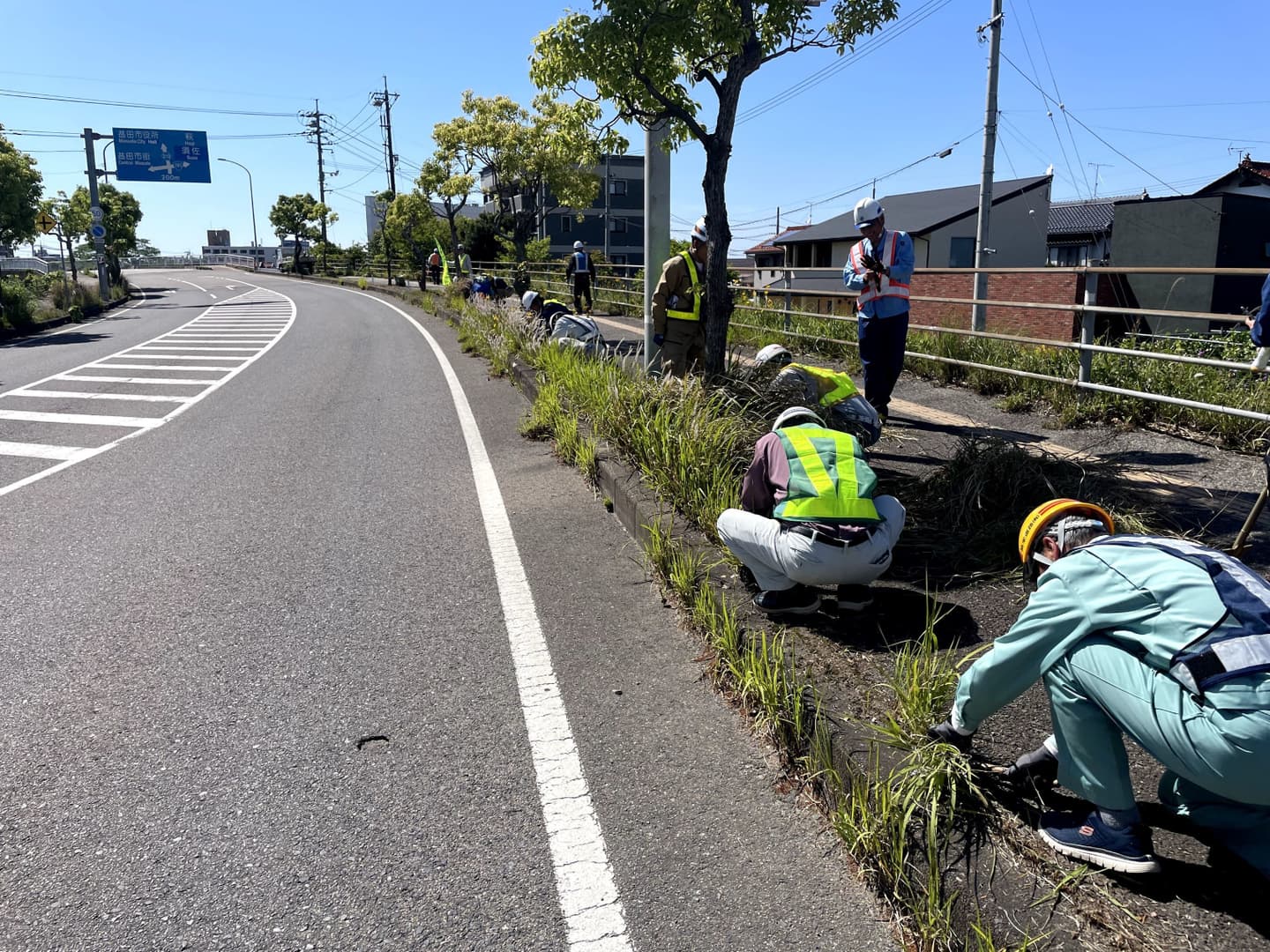 益田市乙吉町の「国道191号」の歩道および植樹桝内の除草作業を、会員17社から36名が参加して行いました。