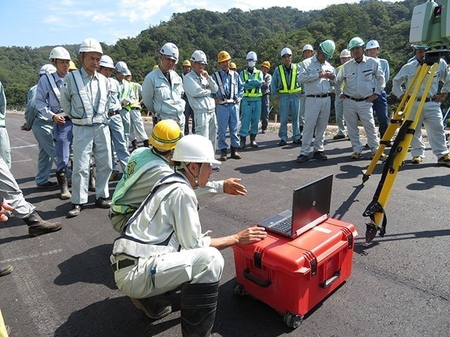 午後からは、朝山大田道路の朝倉地区舗装工事現場において、現地研修を行いました。