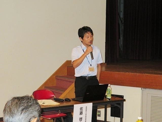 午後からは、会員3社(まるなか建設株式会社、山陰建設工業株式会社、松江土建株式会社)の各担当者から、「ICT活用工事について」の事例発表がありました。