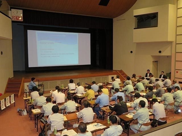 会員17社から44名、島根県から7名の計51名が参加し、多伎コミュニティセンターにおいて「ICT活用舗装工事研修会」を開催しました。