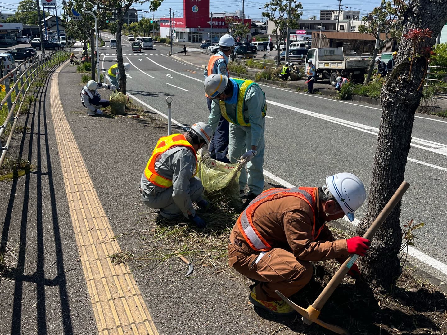 益田市乙吉町の「国道191号」の歩道および植樹桝内の除草作業を、会員17社から36名が参加して行いました。