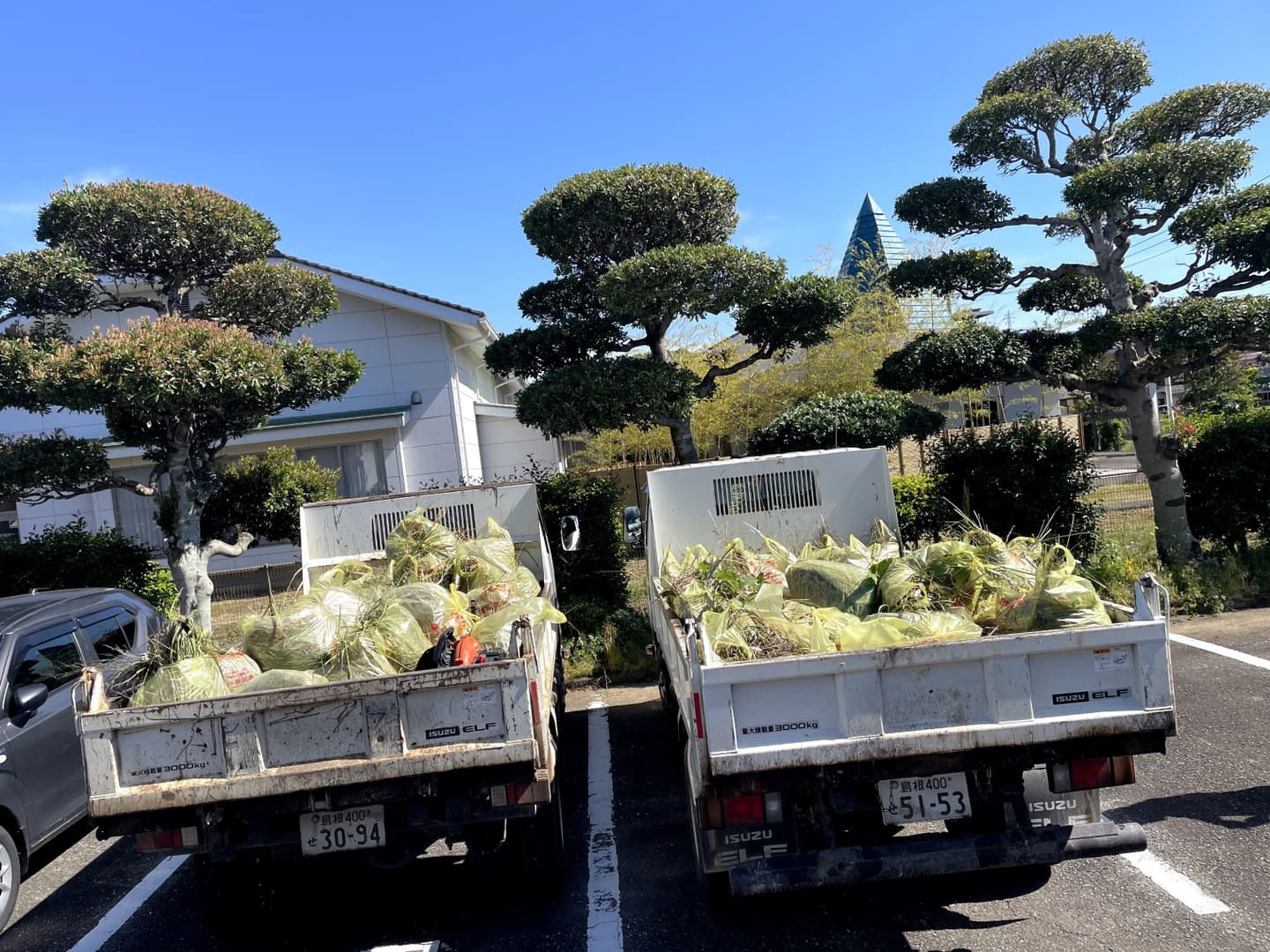 5月とはいえ暑い日差しの中、約300mの区間に設置された33カ所の植樹桝は長年手つかずの状態だったそうで、集まったゴミ袋は3tトラック2台分になりました。