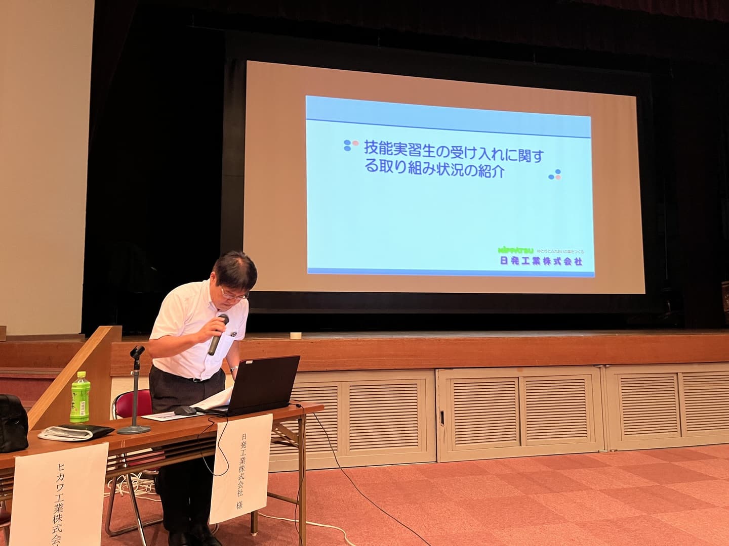 島根県商工労働部雇用政策課から外国人材雇用情報提供窓口専門員 内藤高彰 様をお招きし「外国人材雇用制度」 を受講し、続いて会員2社(ヒカワ工業株式会社、日発工業株式会社)の各担当者から、外国人材雇用状況及び実状について事例発表がありました。
