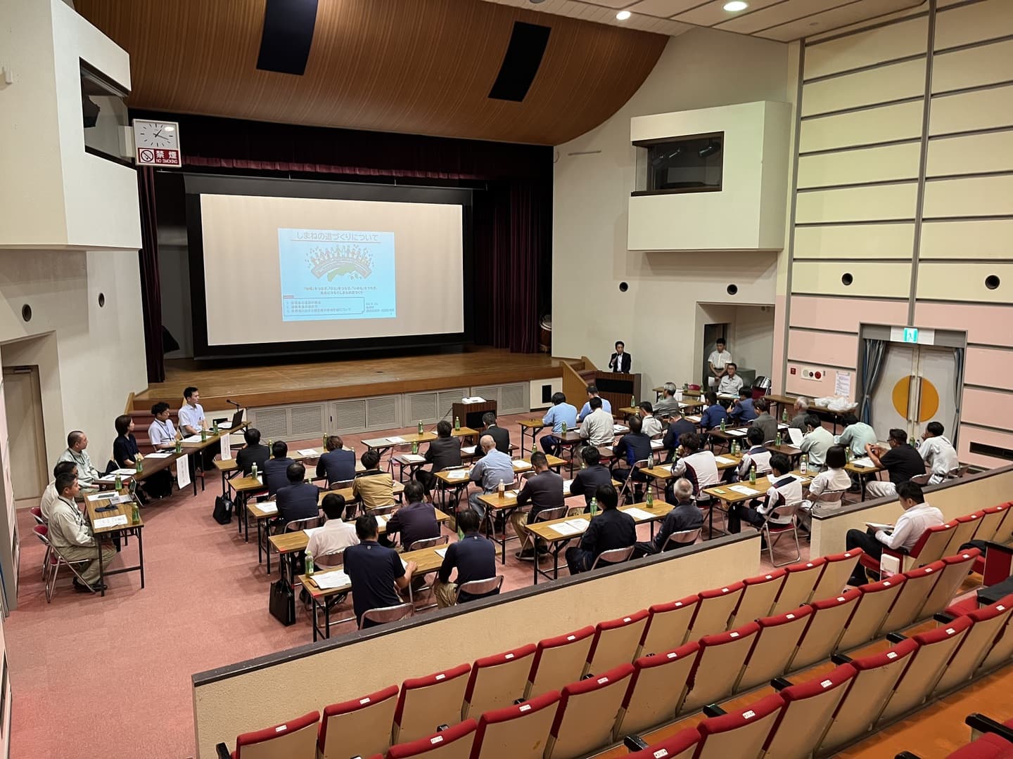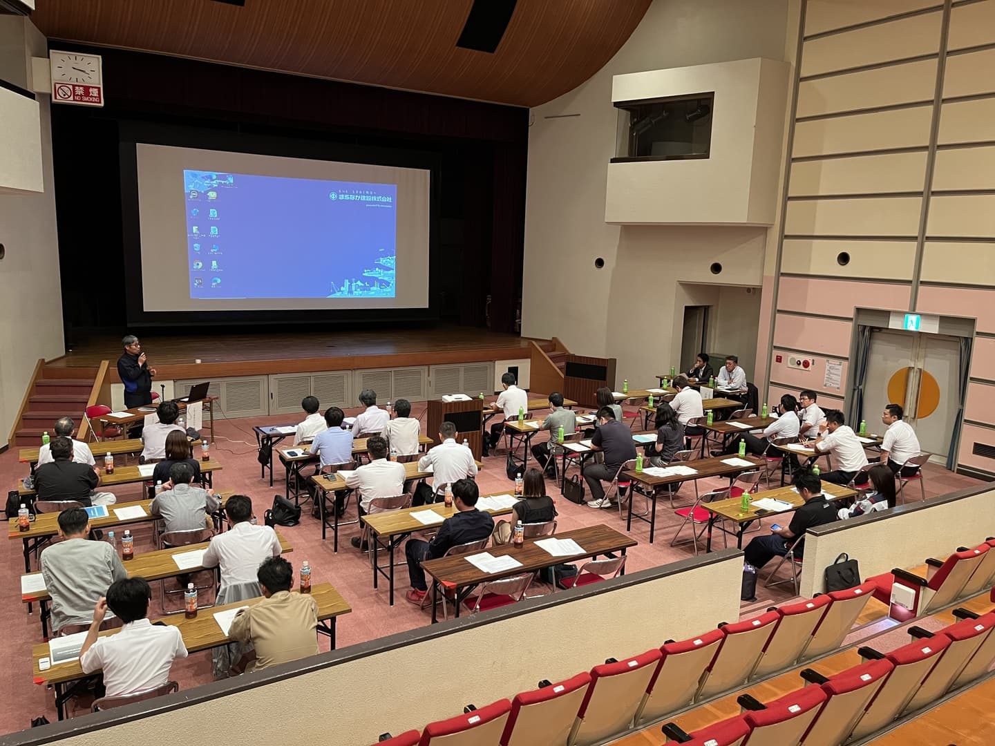 島根県土木部道路建設 課長補佐 村上威臣氏及び道路維持課 道路維持係 主任 小林由加里氏、同主任 松浦雅大氏をお招きし「しまねの道づくりについて」 を受講し、続いて、前田道路株式会社中国支社 技術部副部長 佐伯祐介氏による、「舗装業界のカーボンニュートラルの取組(中温化技術)」及び「舗装の調査・診断(舗装診断士)」を受講しました。