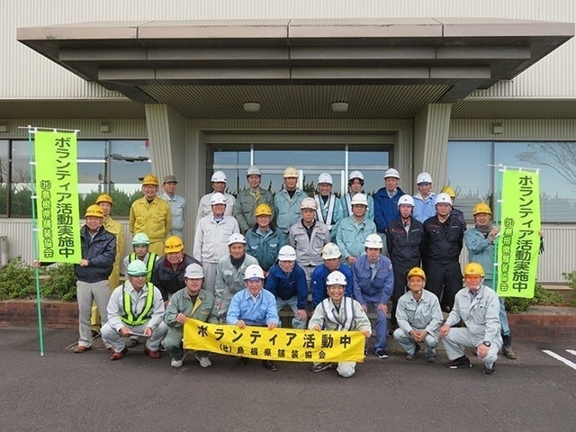 松江市内の2ヶ所「国宝松江城マラソンコース」と「塩見縄手」で清掃活動を行い、会員17社か ら35名が参加しました。